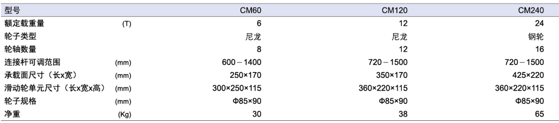 ● 每个CM系列滑动轮由两个滑动轮单元及联接杆组成